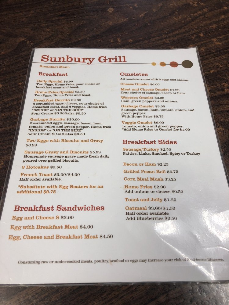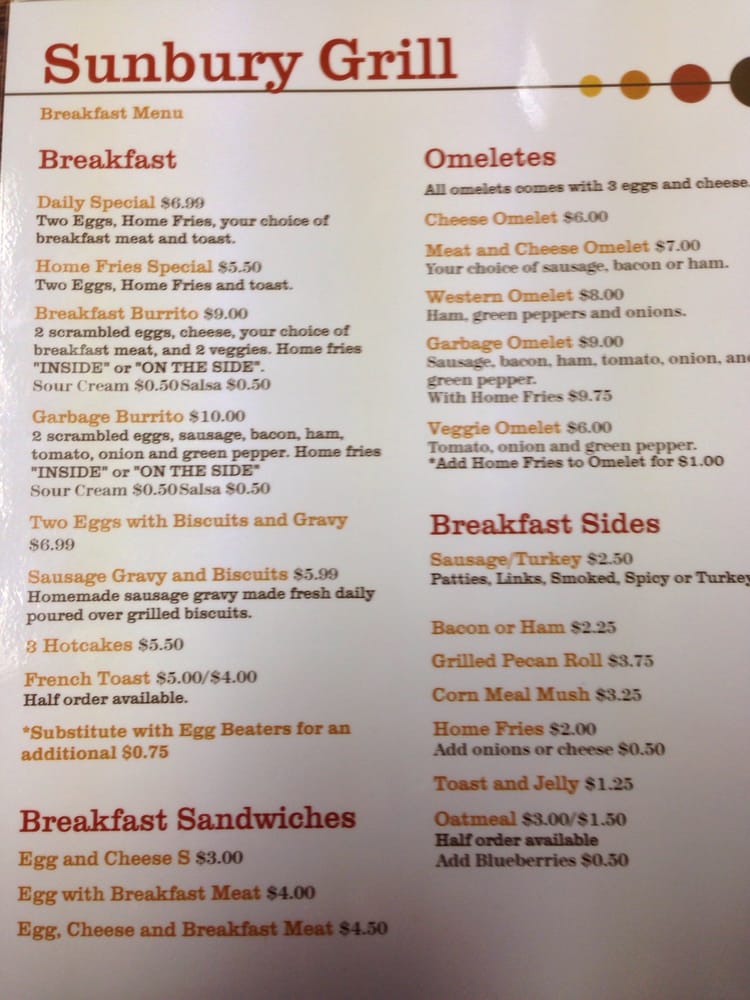 Welcome to Sunbury Grill, your go-to destination in Sunbury, OH, for a delightful American breakfast and brunch experience. Nestled at 38 E Cherry St, this charming eatery offers a cozy, family-friendly atmosphere where quality meets comfort. With options for takeout, delivery, and outdoor seating, it's perfect for any occasion—whether you're looking for a casual meal with friends or a festive family gathering.